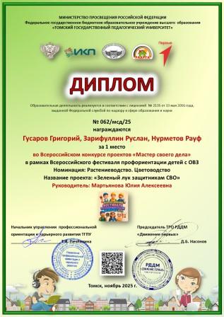 Всероссийский конкурс проектов «Мастер своего дела» в рамках Всероссийского фестиваля профориентации для детей с ОВЗ.